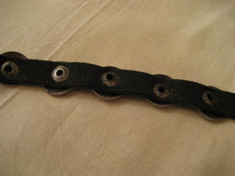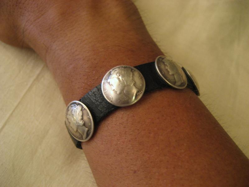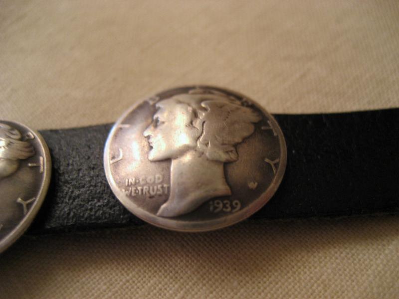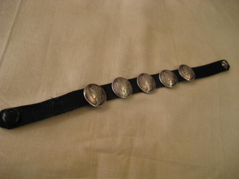 | ビンテージコンチョブレス ブラックレザーにオールドコンチョが5個付いたコンチョブレス。1930年代〜1940年代のオールド1DIME(10¢)コインコンチョ。ブレスはスナップ止めタイプ。シルバーアクセサリーなどと合わせてもクールなブレスピース! |