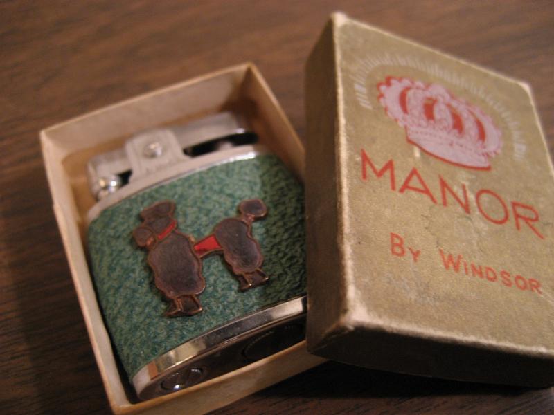 | ビンテージWINDSORオイルライター / 50年代 USA. プードルデコレーションのビンテージオイルライターです。WINDSOR社のMANORというブランド?でしょうか。。。 オリジナルBOX付き。キュートでクールなスモーキングアクセサリーピース! ディスプレイにもGOOD! |