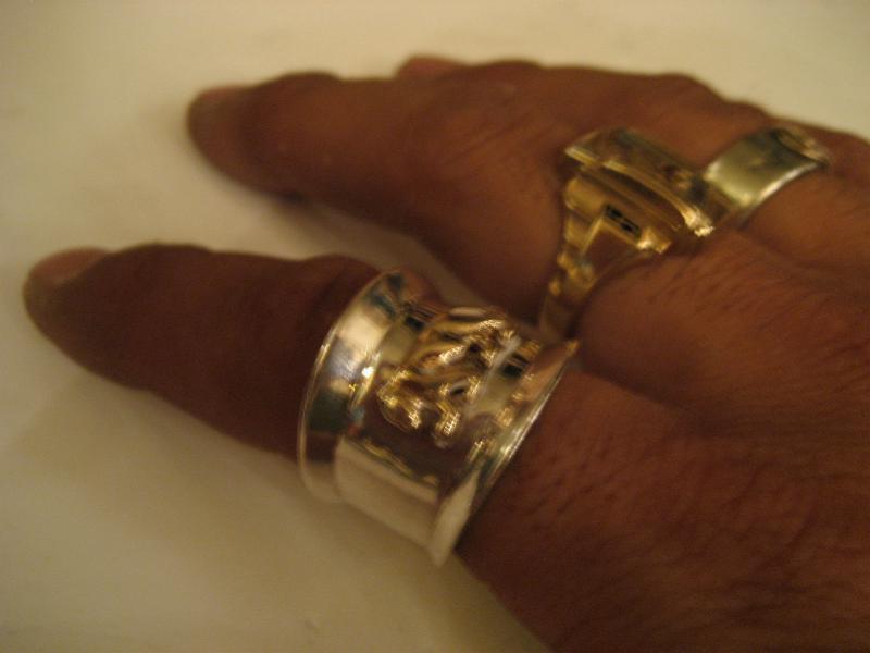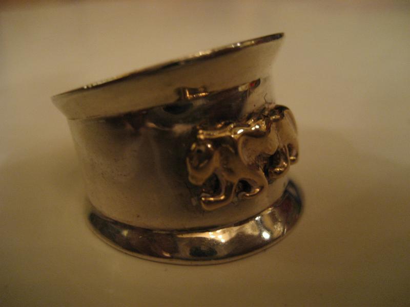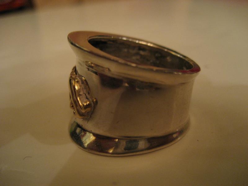 | ビンテージパンサーリング / USA, KS 925 ゴールドパンサーが付いた幅広タイプのビンテージシルバーリング。 |