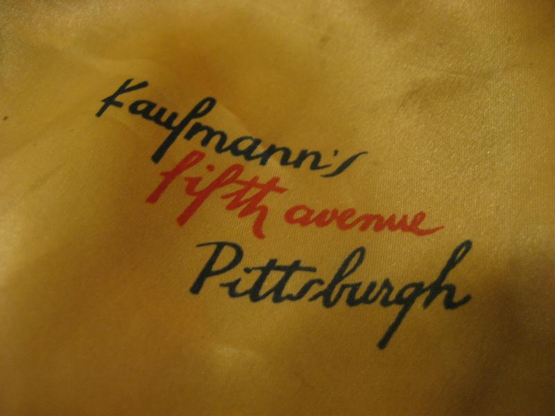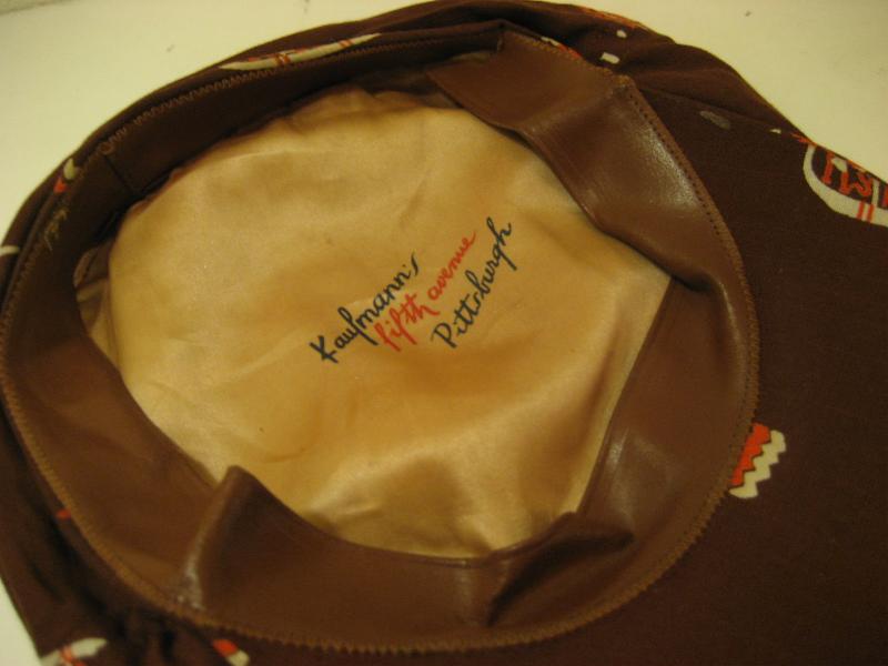 fifth avenue レーヨン素材のビンテージハンチング。エスニックまたはミッドウェストな絵柄のプリントでブラウンカラーベース。フロントスナップ付きですので深めにかぶるのもOK。。。クールでGOODなビンテージヘッドピース! ■Kaufmann's 創業1871年、1946年からデパートメント展開したペンシルバニア州ピッツバーグの老舗メーカー。現在は高級デパートのMacy's |
