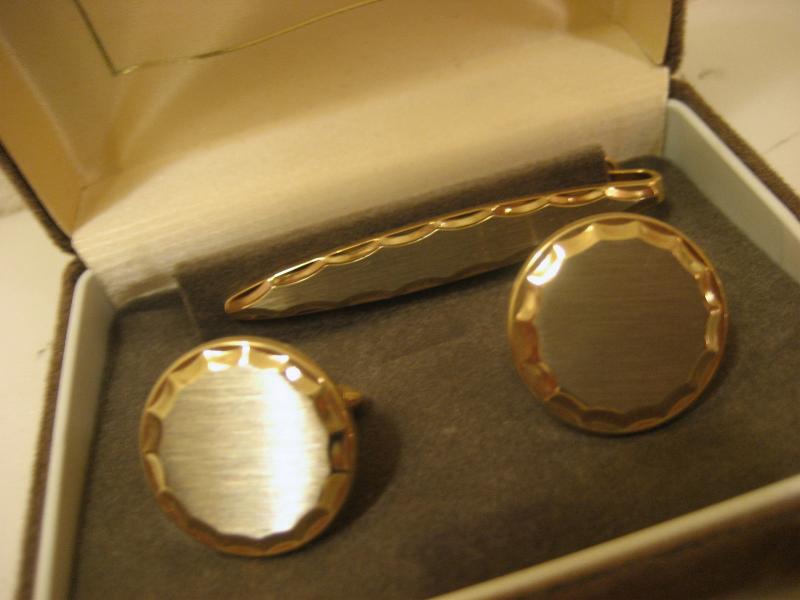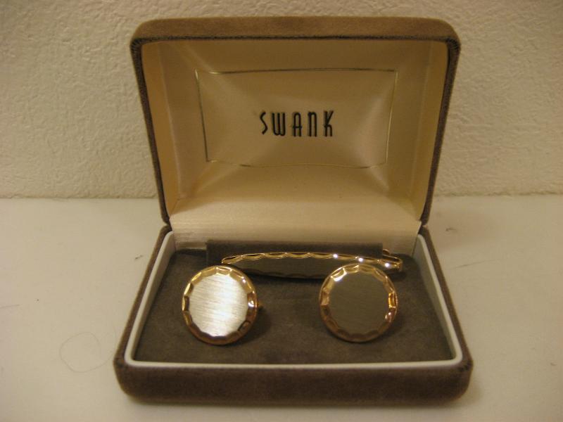 | ビンテージカフリンクス&タイバーセット / 50-60年代 SWANK, USA. BOX付