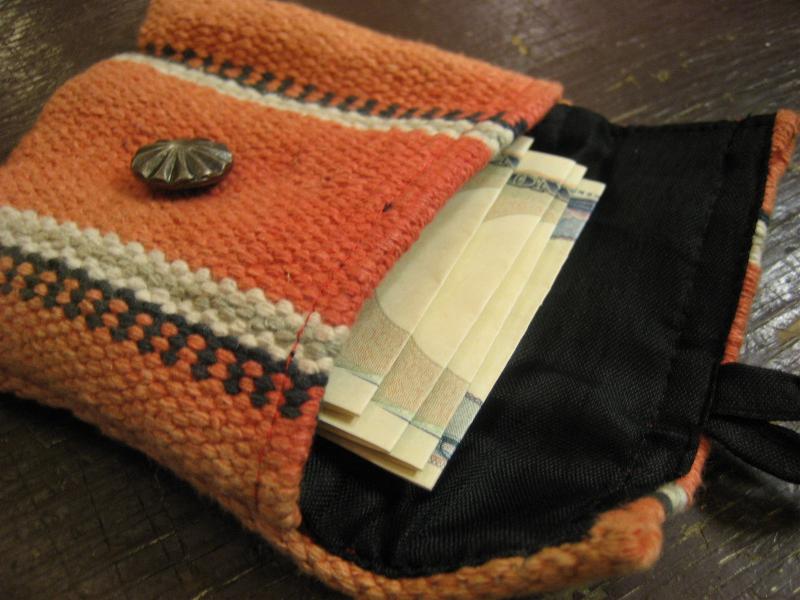 | インディアンラグウォレット / USA. USED メタルメイドのアポロコンチョタイプストッパー付き。ハードなインディアンラグ地使用で、裏地付きのウォレット。コインや紙幣はもちろん、カード類など専用で使用してもGOOD! |
