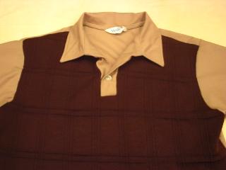 | ビンテージシャツ / 60-70年代 / USED フロントパネル切り替えタイプのプルオーバシャツ。フロントはサマーニット地で切り替え柄。ボタン1個のプルオーバタイプ。ポケットなし。 |