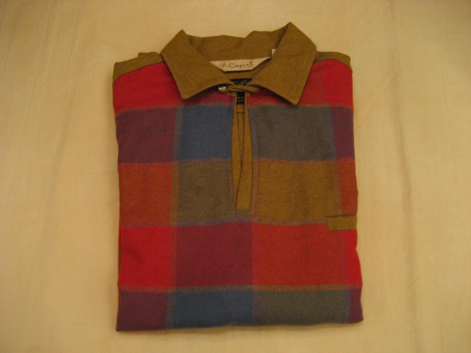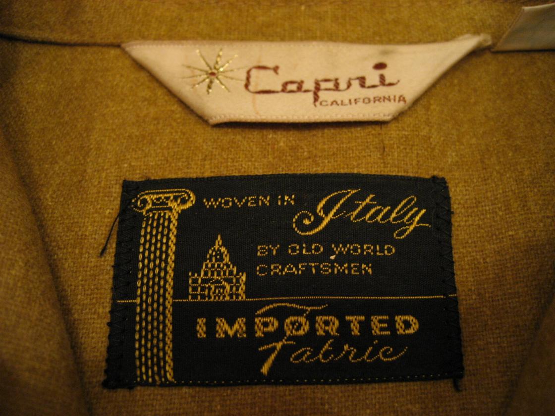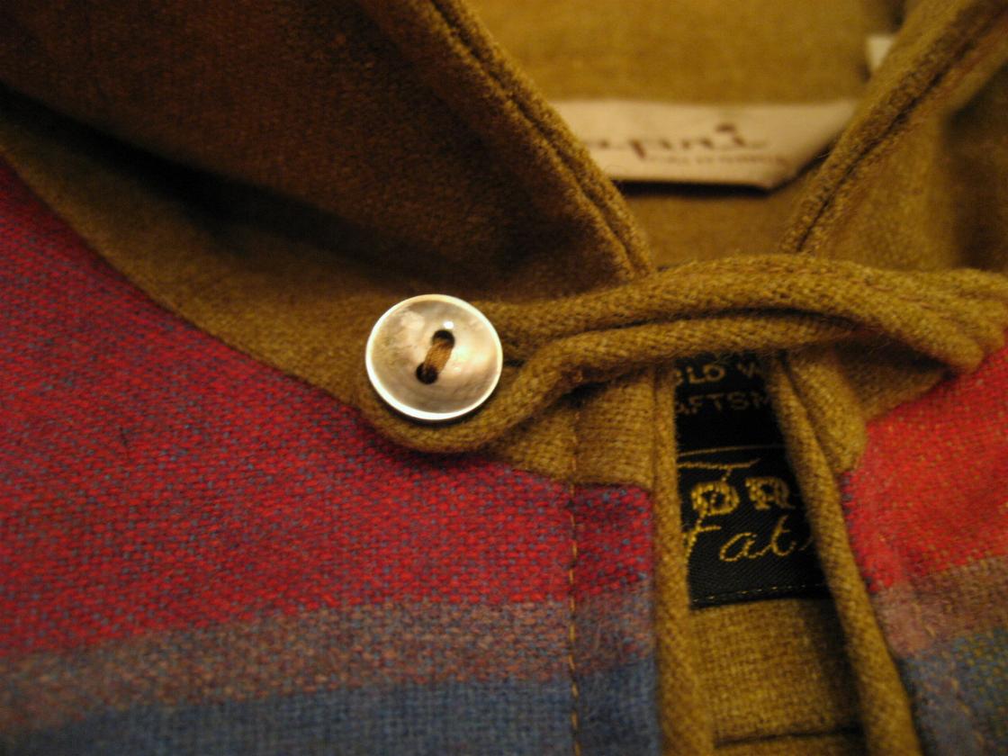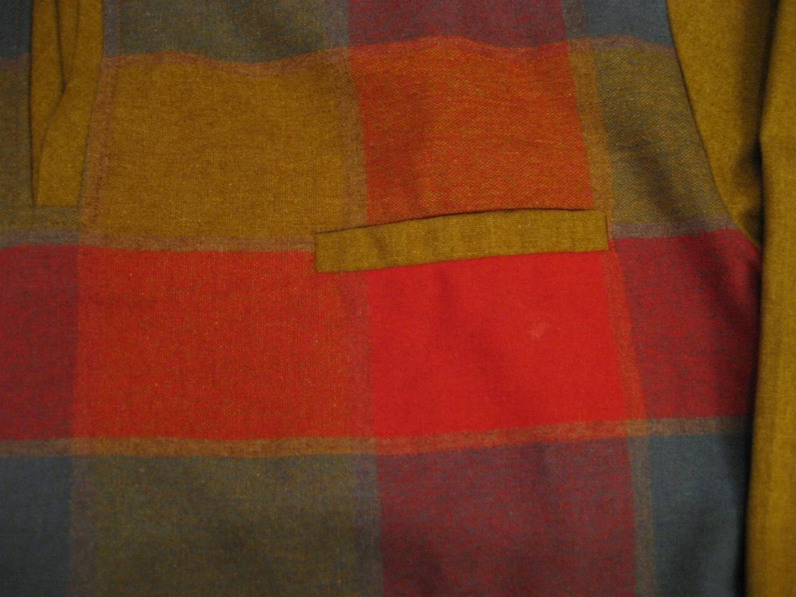 | ビンテージシャツ / 50-60年代 / USED / Capri MADE IN USA. カリフォルニアブランドのフロントチェック柄パネルのプルオーバーシャツです。生地はイタリー製のウール素材。衿はイタリアンタイプのオープンカラー、ロングチンループ止めでループは衿裏に釦止めで隠すことができます。ポケットは左胸に切ポケットタイプで1個、袖口はアジャストボタン付き。両脇裾に3.5cmほどのスリット入り。 |