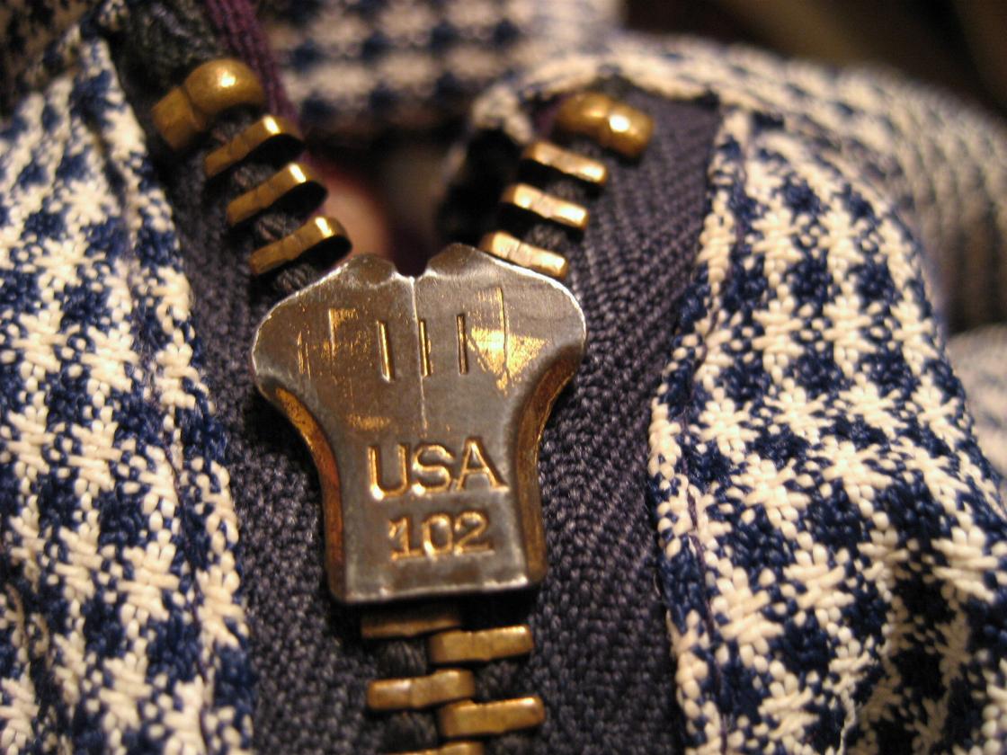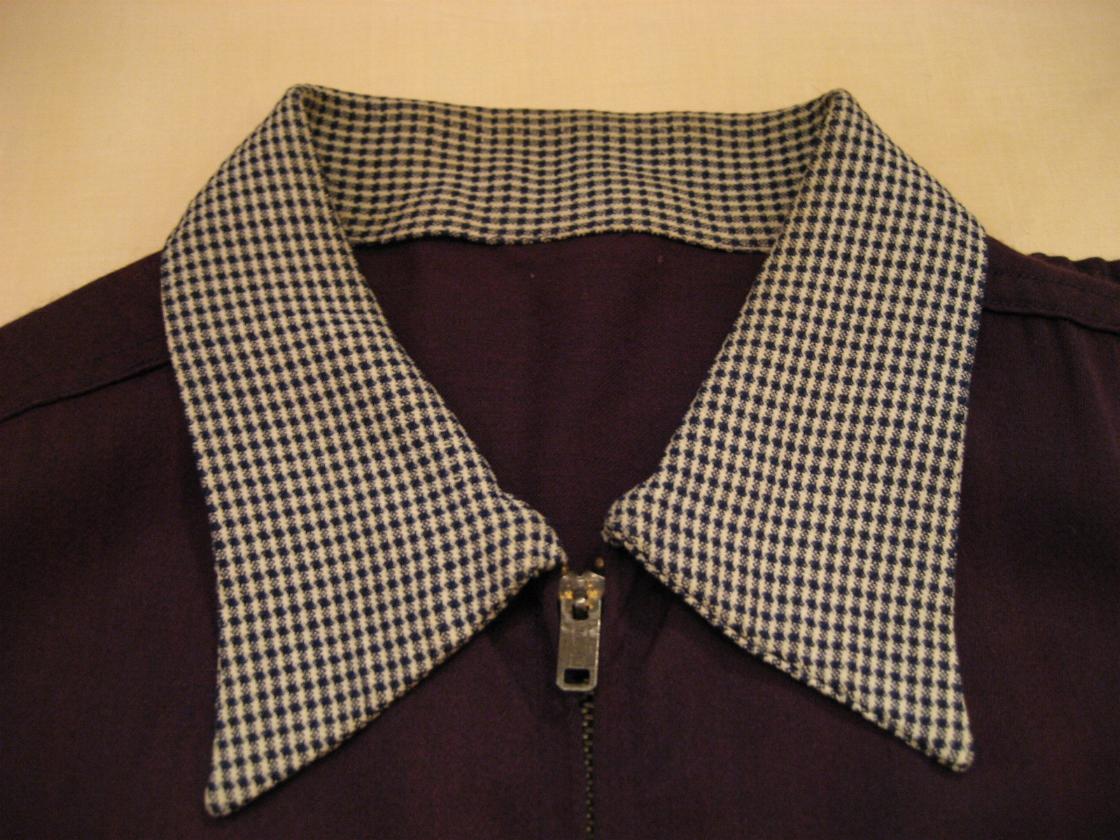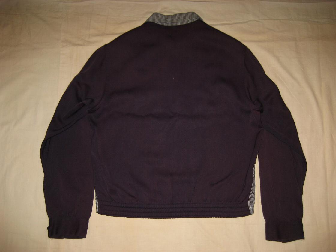 | ビンテージギャバジャン / 50年代 / MADE IN USA. USED クールなツートーンのギャバジャンです。衿とフロントが白黒の千鳥の切替、フロントジップ(SERVAL, USA)、袖口カフスはアジャストボタン付、バック裾はゴム入り、一重仕立て、ダブルステッチ。 |