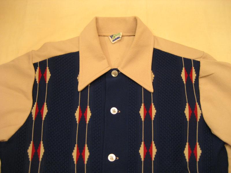 | ビンテージシャツ / 70年代 / USED ツートーンにアーガイル柄がクールなビンテージシャツJKです。フロントパネルデザインで衿・袖・裾及びバックが無地。50年代にインスパイアされた感じのGOODなシャツです! |