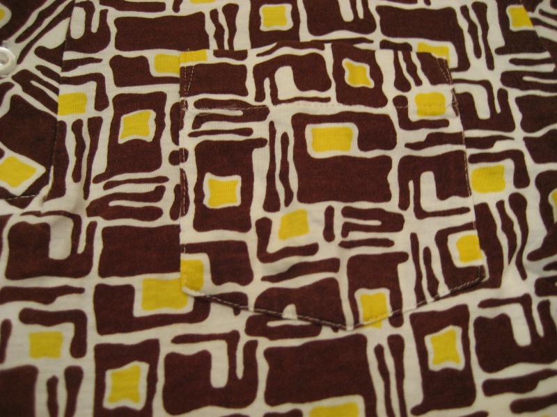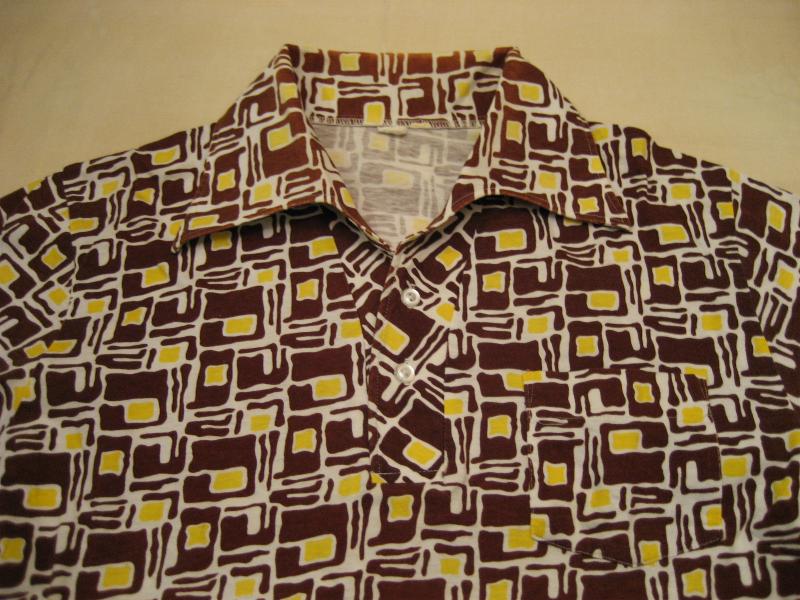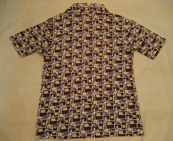 | ビンテージシャツ / 70年代 / USED イタリアンカラータイプのプルオーバシャツ。アメーバスクエアのようなアトミック絵柄で素材はT-シャツのようなスムースコットンなので肌触りも良いです。左胸にパッチポケット。年代を感じさせるタイとなシルエットがGOOD! |