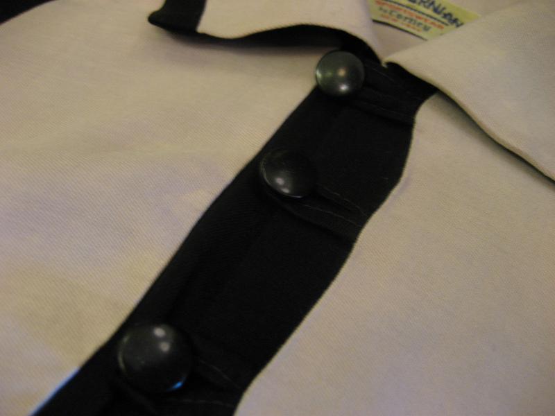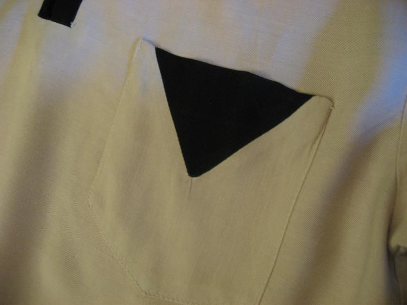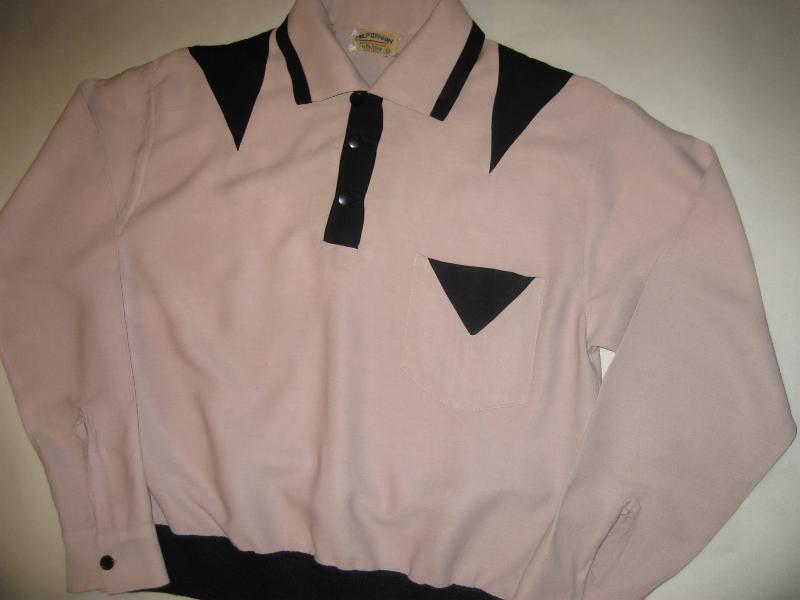 USED 衿まわり、ショルダー、ポケット、前立て部分に切り替えと裾まわりリブ仕様のクールな50'sシャツ。プルオーバータイプでカラーはレアなクロピンカラー。 |