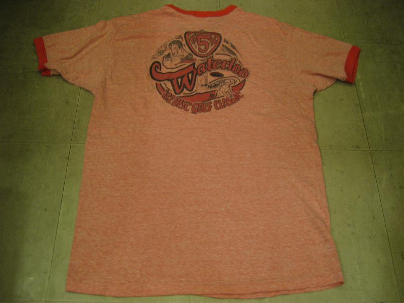 | プリントリンガーTシャツ / USED / 1982 Hanes, MADE IN USA 80年代ヘインズのリンガーT。胸とバックにプリント。Waterlooという町でおこなわれた"'82 DISC GOLF CLASSIC" という大会の5周年記念Tシャツ。 |