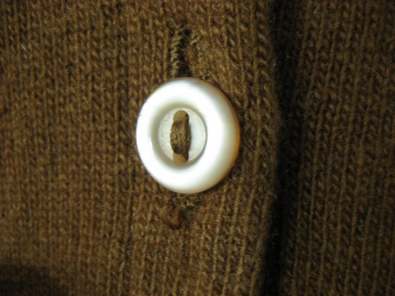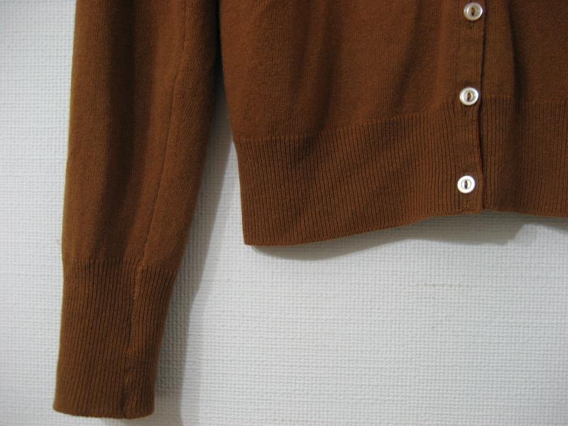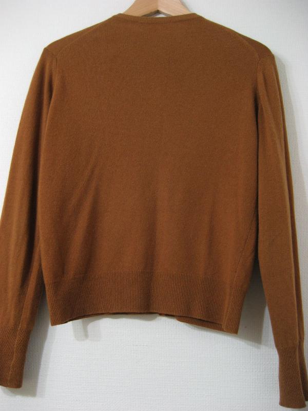 IN SCOTLAND. USED カシミヤニットのクルーネックカーデ。フロントボタン。カラーはブラウン系。 |