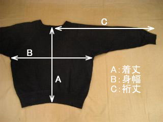平置きの状態でA〜Cそれぞれを採寸しております