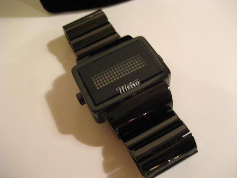 | MEN'S METRO デジタルリストウォッチ / 新品オリジナルBOX付(取説なし) メトロのデジタルタイプ腕時計。クォーツムーブメントで電池式。右サイドボタンを押すとメッセージが流れ最後に時間表示。右ボタン2回で時間、3回で月日をそれぞれ表示。ブラックフェイスにブラックベルトのクールウォッチ! |